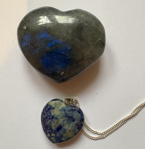- Three stones: Each held deep meaning. One was painted with his nickname by friends, a reminder of community and belonging. Another was a heart-shaped necklace belonging to his sister, crafted from lapis lazuli—a crystal of truth, communication, and inner wisdom. The third was a heart stone belonging to his mother, made of labradorite, known for its protective and transformative energy, helping to navigate change with strength.